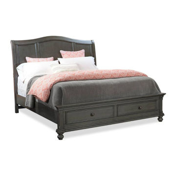 Traditional proportions and finishes are simplified with contemporary lines and modern conveniences. This sleigh bed provides a high profile with framed panels at the foot and head of this grand modern bed. The Peppercorn finish adds a modern charcoal gray tone while the USB ports on the side of the headboard provide modern functionality with device charging at your fingertips. Refresh your space and transition your bedroom into the relaxing oasis you deserve.