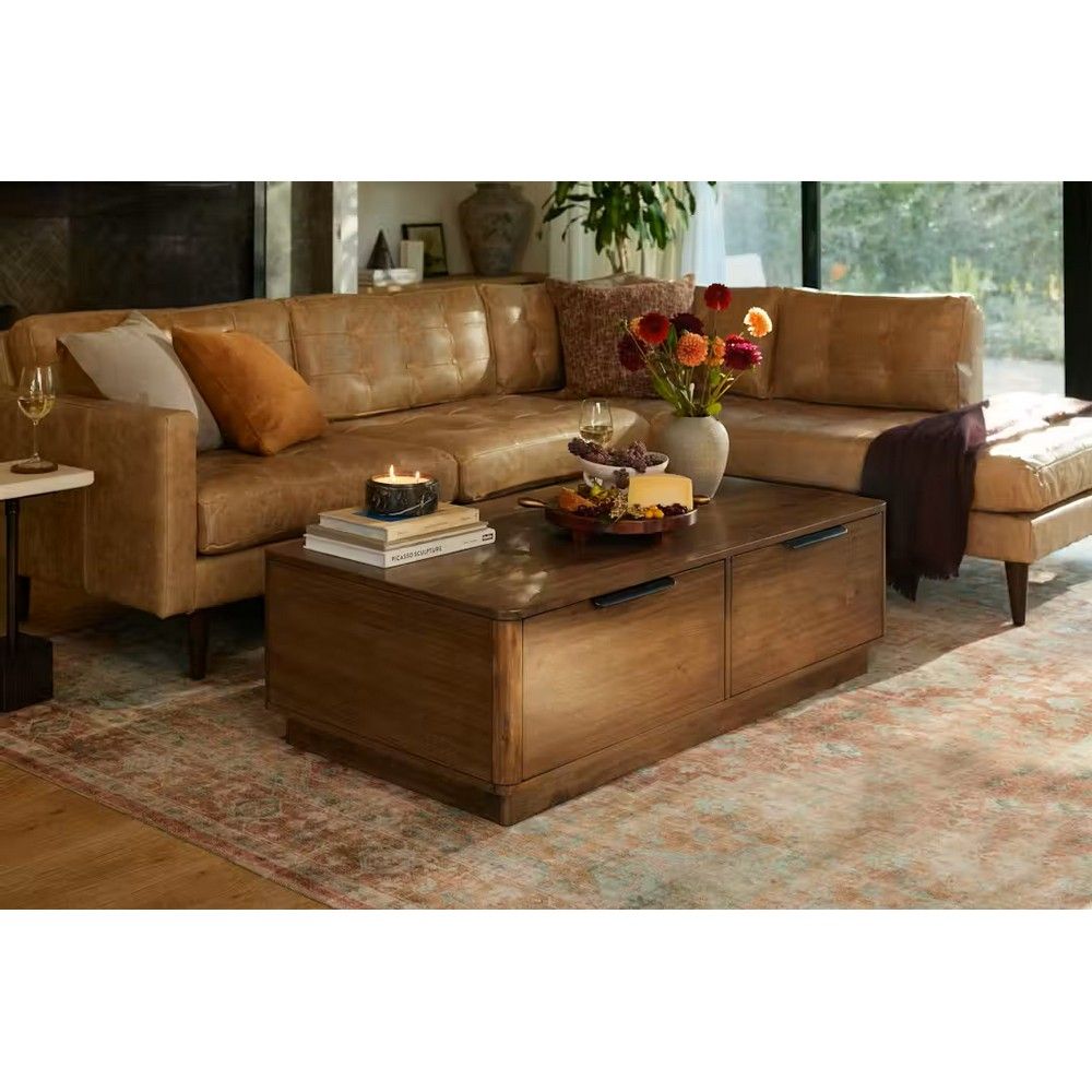 The perfect modern, organic touch to your living room, this naturally beautiful coffee table puts the unique wood whorls and grains on display while giving you ample storage space. With its easy-to-match shade of Acacia wood, rectangular frame, and four spacious drawers, the Blair is the perfect piece to compliment your sofa setup while also helping you keep things looking neat and tidy. Acacia Solids Alder veneers with some engineered wood Ashlen Finish