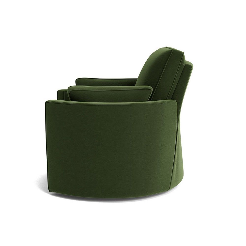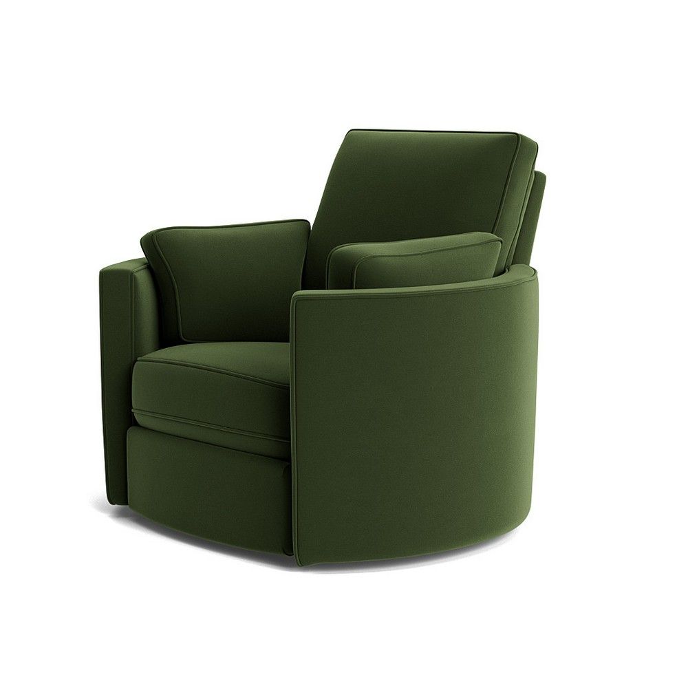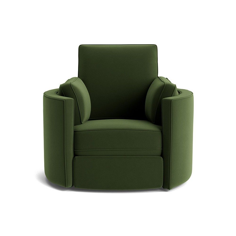 Go ahead and kick up your heels and relax into the Corey Swivel Recliner. With its rounded silhouette, swivel base and concealed power reclining footrest, you’ll be wrapped in comfort from head to toe. With its concealed power reclining footrest, you can instantly go from a cozy seat to a luxurious lounger. Plus its pillowy seat with removable side cushions will ensure you’re enveloped as you relax. Make it your own! Available to order in dozens of fabrics.