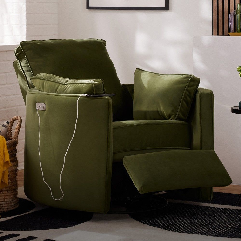 Corey Power Swivel Recliner by Joybird - Forest