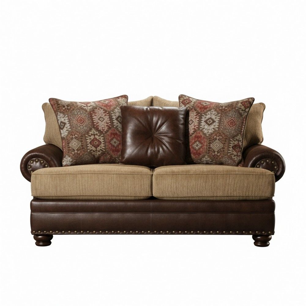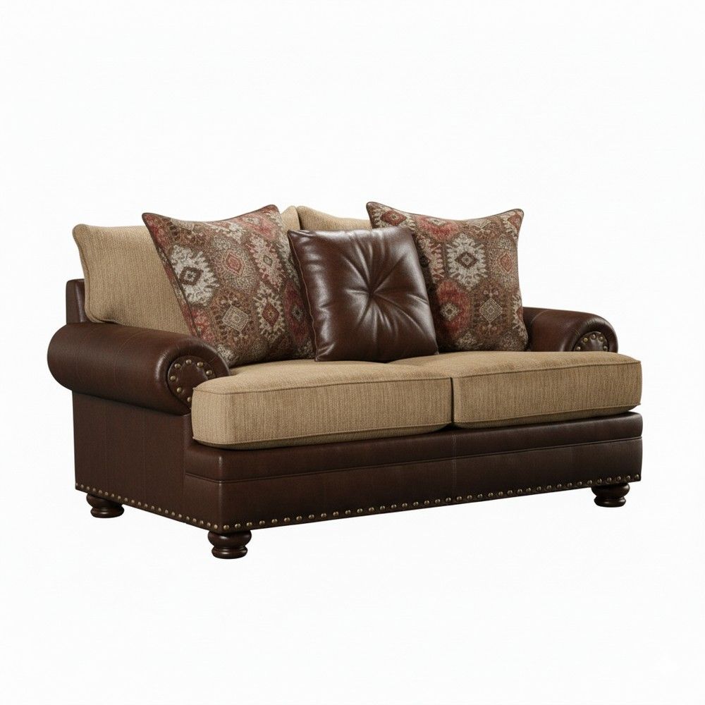 Transform your living space with the inviting charm of our Dakota two-tone loveseat. Featuring a striking contrast of rich chocolate and warm tan upholstery, this loveseat combines southwestern design with timeless elegance. The plush tan cushions provide exceptional comfort, while the chocolate-hued frame adds depth and durability, making it a standout centerpiece for any room. Perfectly sized for lounging or entertaining, its sturdy construction and high-quality materials ensure lasting style and support.