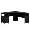 A deep Raven Oak finish sets apart this L-shaped desk from the Dawson Trail collection apart and brings a stunning centerpiece to any home office. This l-shaped home office desk features a file drawer with full extension slides that conveniently holds your most important letter-size hanging files. For a tidy workspace, this modern l-shaped desk includes grommet holes and pass-throughs for cord management of your laptop charger and power cord, your lamp, and more. A lower open storage shelf is ideal for books, a small organizing bin, binders, or home decor. The spacious top surface of this l-shaped desk with storage easily accommodates your computer, photos of your family, your coffee cup, and other home office necessities. This small office desk is finished on all sides for versatile placement in any room of your home. Get to work quickly with a T-lock drawer system that makes assembly a breeze. Elevate your home office with the good looks and convenience of this l-shaped desk.