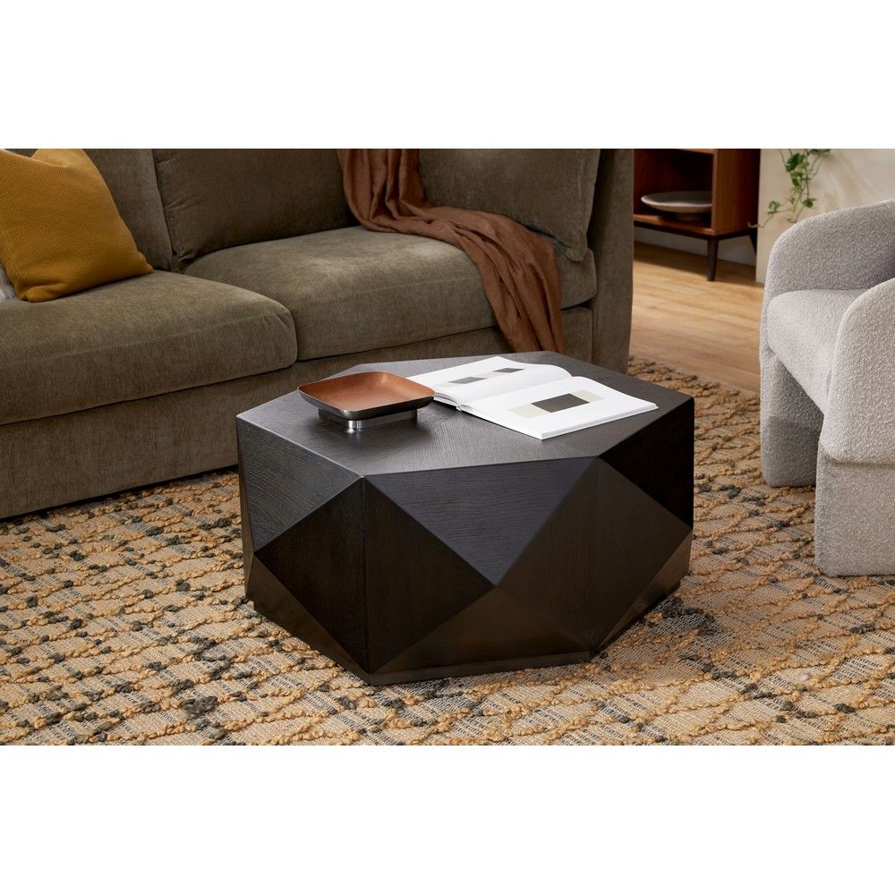 Even your coffee table should be able to make a statement, and the Devon doesn’t disappoint, from its hexagonal shape to its three dimensional sides. Select Solids with White Oak veneers Medium warm brown finish Hexagonal Shape