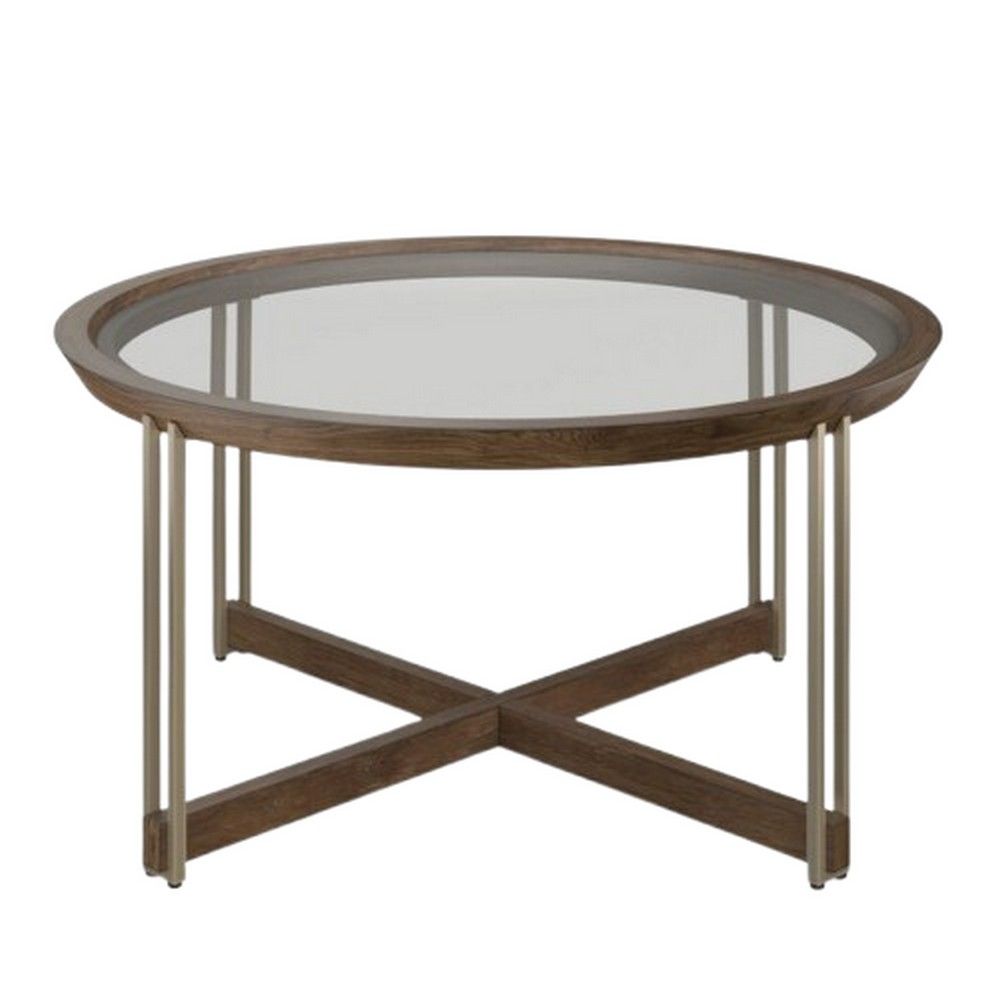 With a nod to architectural and Art Deco influences, the Encino table group makes a statement in bespoke sophistication. Its distinctive look combines a modern mix of materials and seamlessly blends wood, glass and metal to brilliant effect. Each table features a wood-framed, clear glass top that creates a window to its stunning wood base and elegant metal legs. A warm Walnut finish highlights the rich grain patterns showcased by its hickory veneers and is paired with Tarnished Silver metal legs. Place these stunning tables anywhere you need a bit of undeniably chic character. Finish: Walnut, Tarnished Silver, Clear Glass. Materials: Hickory Veneer, Hardwood Solids, Metal, Glass 5mm tempered clear glass w/straight edge insert in wood top. wood stretcher. metal legs. levelers.