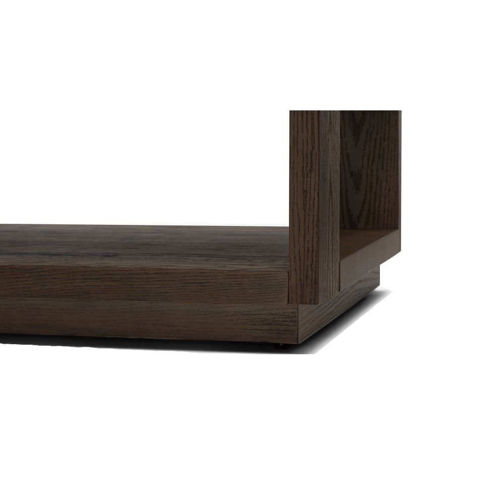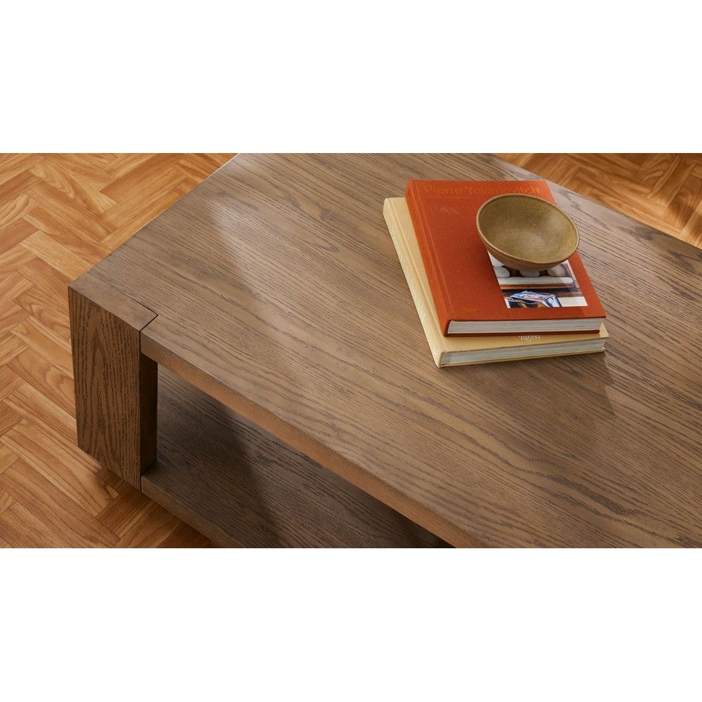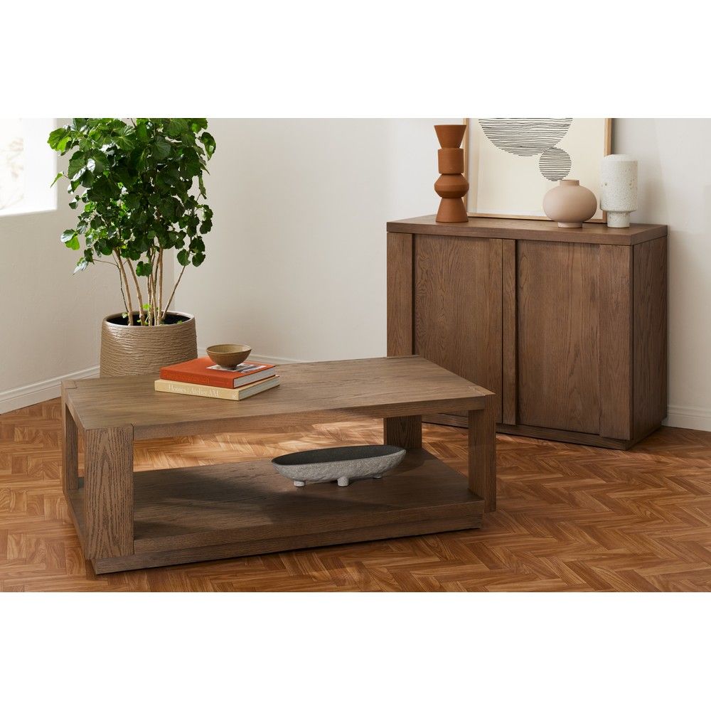Casual and contemporary, the Harriet Coffee Table perfectly complements a variety of decor styles, for a put-together look that's effortless. Showcasing a medium stain, wheeled base, and boxy silhouette, its spacious table top brings you ample room for displaying books, candles, or plants, while the bottom shelf lets you tuck away other essentials when not in use. Split Heart and Select Solids Some engineered wood Medium Brown finish