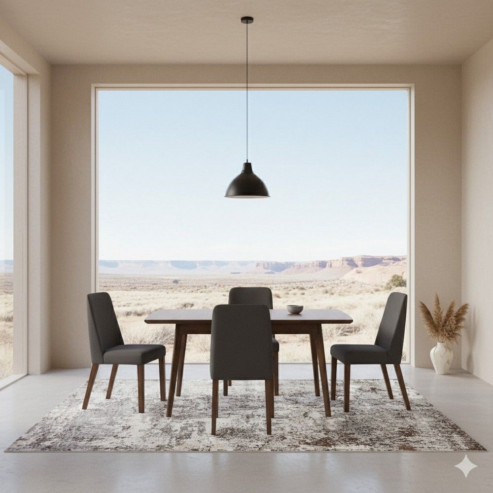 A refreshed take on retro aesthetics. This dining extension table adds an air of playful simplicity to your dining space, capturing the architectural language of mid-century stylings. Subtle in design, it invites the eye with a sleek, open frame. A casual, yet timeless, finish and self-storing extension leaf complete this study in form and function. Made with hardwood solids, mango wood veneer and MDF substrate Medium brown wood-tone finish Self-storing butterfly leaf Assembly required