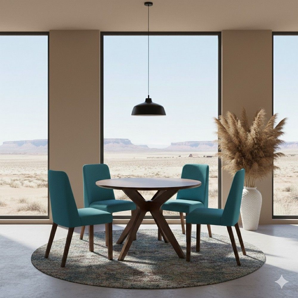 A refreshed take on retro aesthetics. This dining table adds an air of playful simplicity to your dining space, capturing the architectural language of mid-century stylings. Sleek on top, it invites the eye with a dynamic base. A casual, yet timeless, finish completes this study in form and function. Made with hardwood solids, mango wood veneer and MDF substrate Medium brown wood-tone finish Assembly required