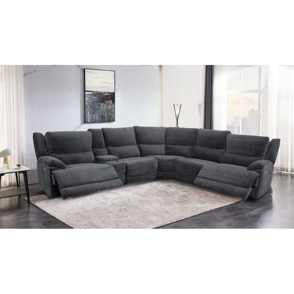- Marcos 6-Piece Power Reclining Sectional with Power Headrest - Charcoal