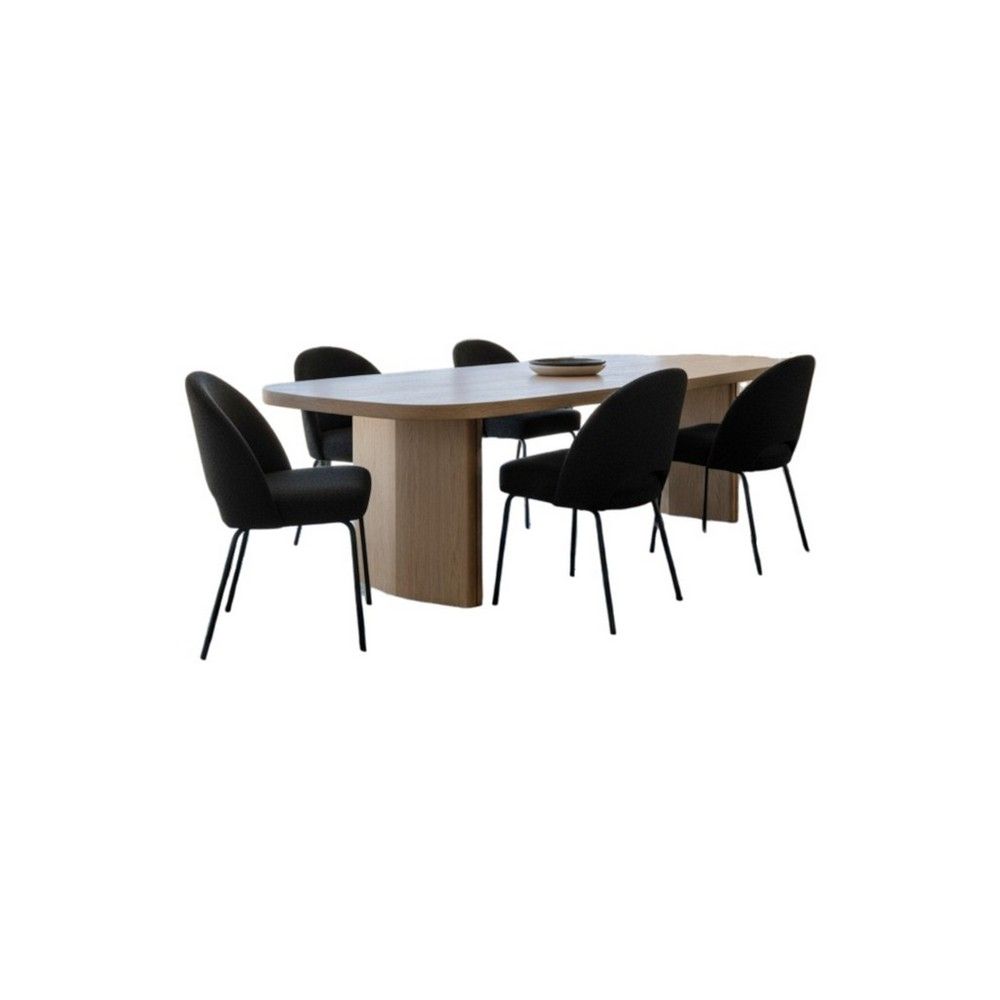 Looking for the perfect blend of style and comfort to complete your dining room? The chairs in this set feature a sturdy black steel base, ensuring lasting durability and sleek, modern appeal. Upholstered in Oeko-Tex certified chenille fabric in a sophisticated black color, they offer exceptional comfort and a touch of elegance, making every meal a luxurious experience.